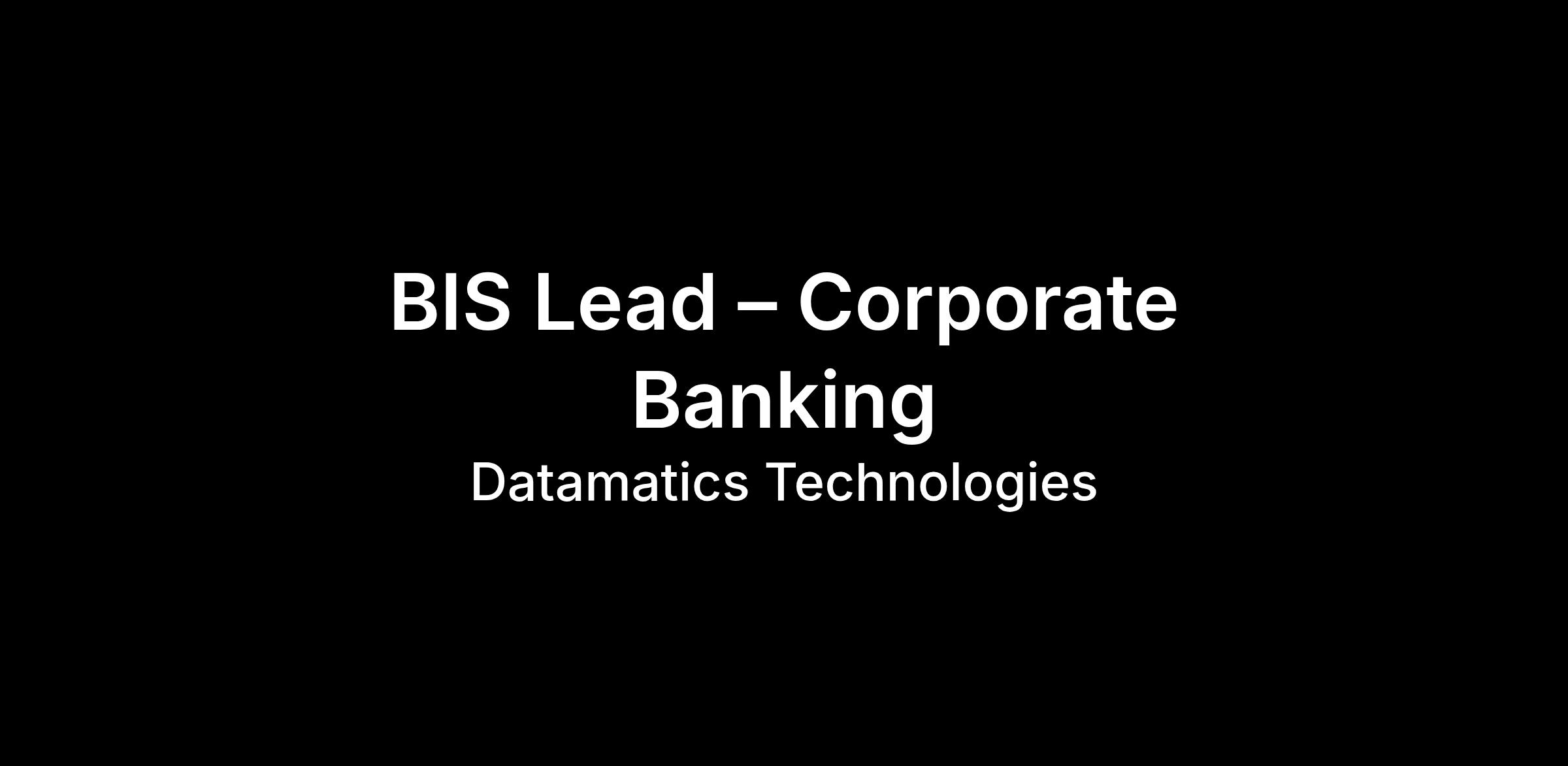 Job Title: BIS Lead – Corporate Banking