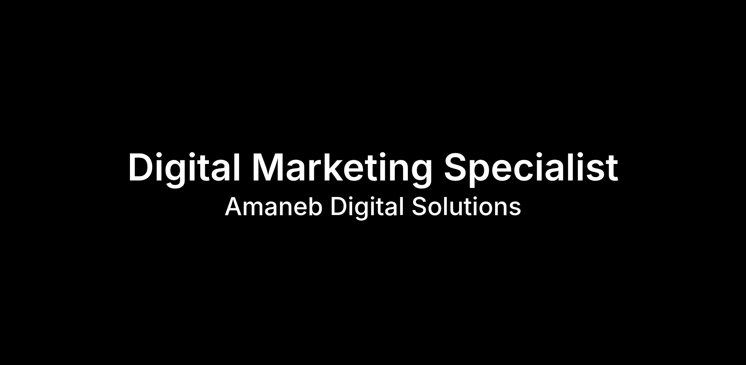 Amaneb Digital Solutions is seeking a highly motivated Digital Marketing Specialist to join our growing digital agency. This role focuses on managing and optimizing paid advertising campaigns across platforms such as Meta, Google, and TikTok to drive measurable growth for our clients. The ideal candidate possesses strong analytical skills, a solid understanding of paid media strategies, and the ability to collaborate effectively with creative and web development teams. This position requires someone who is detail oriented, organized, and dedicated to continuous learning and professional growth. While the role does not involve managing a team, it offers ample opportunity to take ownership of projects and contribute to the success of client campaigns in a dynamic work environment.