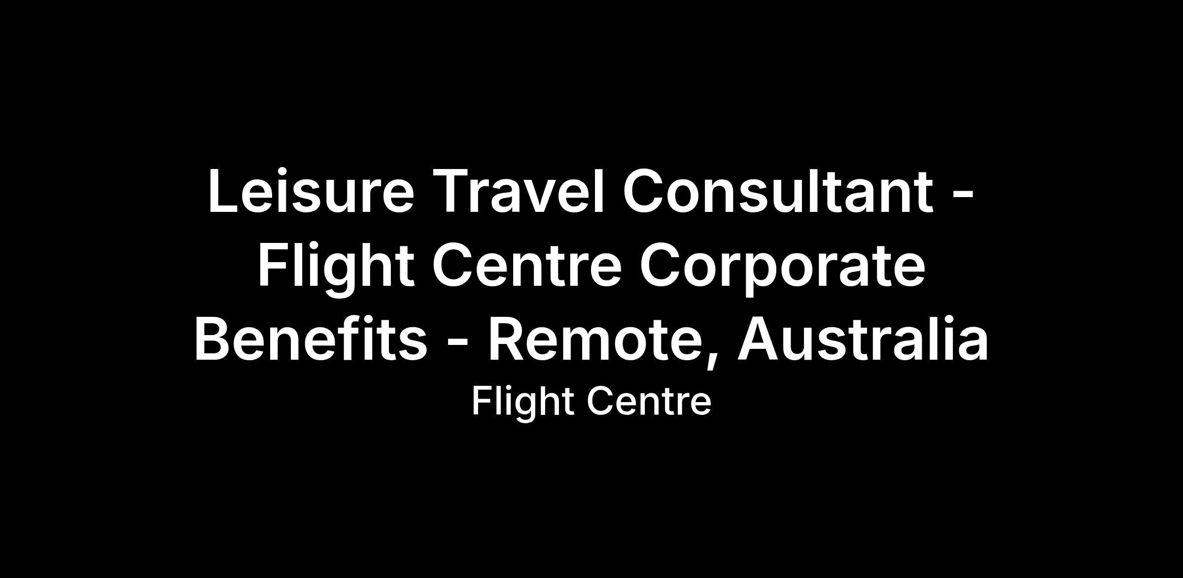 Flight Centre Corporate Benefits is looking for experienced Travel Consultants with a passion for helping our customers unwind from the 9-5 grind with unique leisure travel experiences. Corporate Benefits is a national team with consultants based all around Australia meaning you can work either fully remotely or hybrid from your local Head Office!