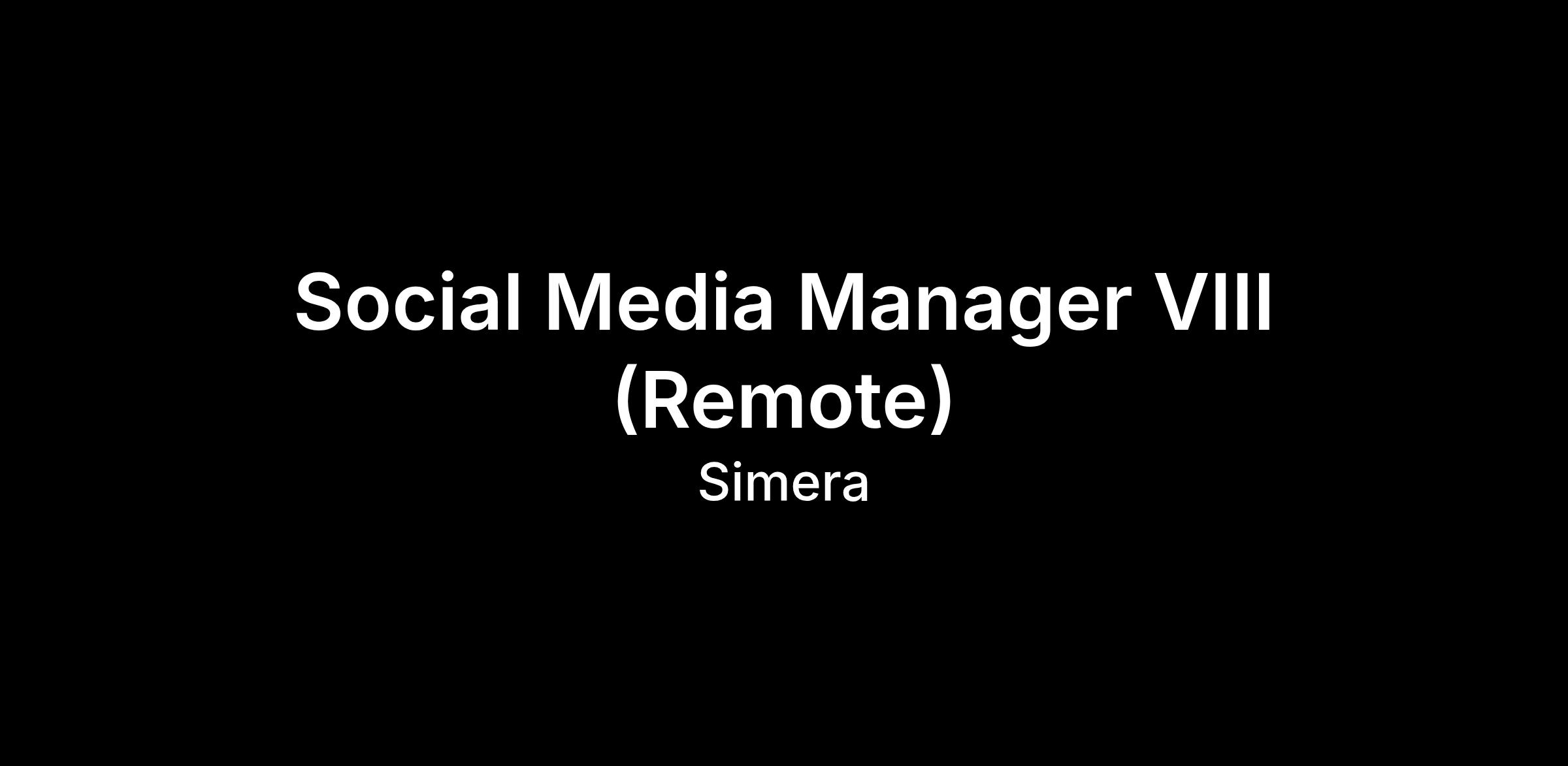 Social Media Manager VIII (Remote)