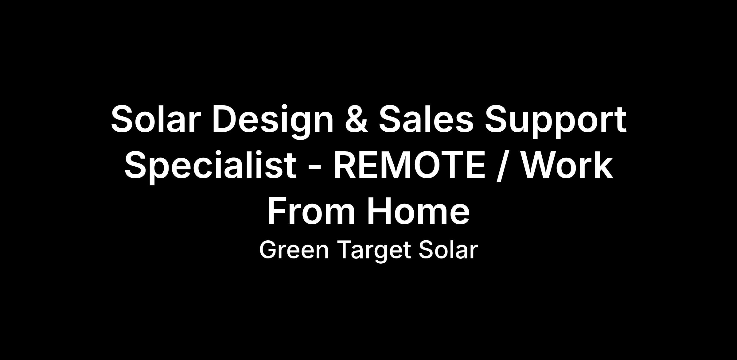 We are a Toronto Canada-based solar company hiring a full-time remote Solar Design & Sales Support Specialist. Green Target Solar is a division of Green Target Engineering Inc, a well-established company with over 12 years in business and an excellent Google rating.