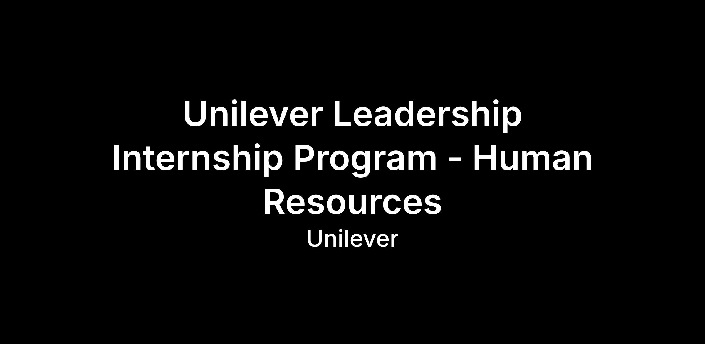 Unilever is hiring for Unilever Leadership Internship Program - Human Resources!
